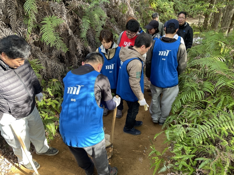 三菱電機トレーディング株式会社様は、今回道普請に初めての参加で18名の皆様が和歌山市からお越しくださいました。ご家族で参加いただいた方も何組かおられました。このように親から子へ世界遺産の素晴らしさ、大切さを引き継いでいく姿こそが道普請の良さだと思います。