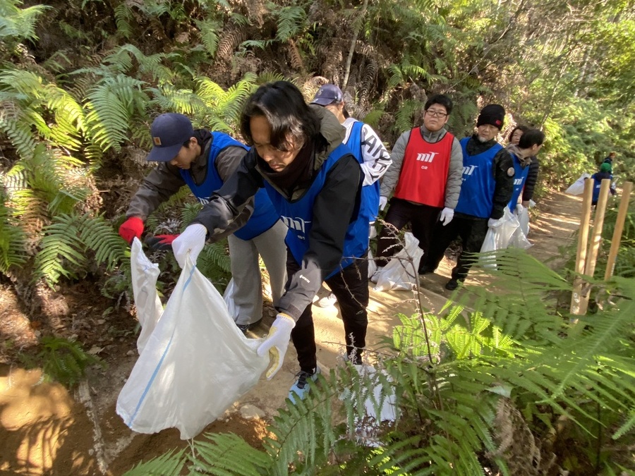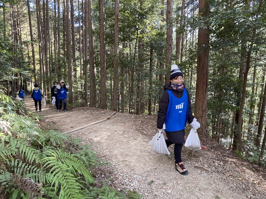 約1時間で1tの土を運び終え、土固め作業もみんなで体験していただきました。作業を終えてから集合写真を撮った後、熊野本宮大社を目指してトレッキングを再開しました。