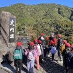 終了後、4つのグループに分かれて現地学習がスタートしました。熊野古道の説明や世界遺産としての魅力などをマスターから説明していただきました。途中、見晴らし展望台で昼食を食べ、熊野本宮大社まで歩き、お詣りのあと、大斎原の大鳥居をバックに集合写真を撮り終了しました。