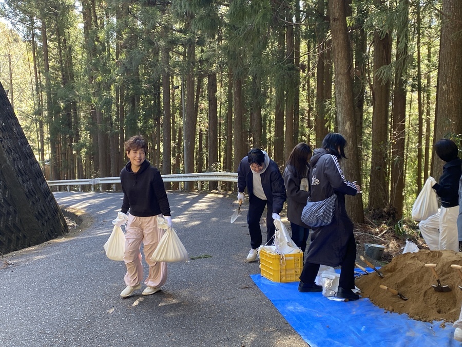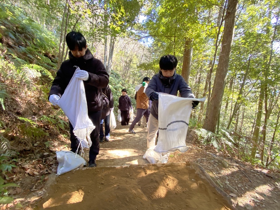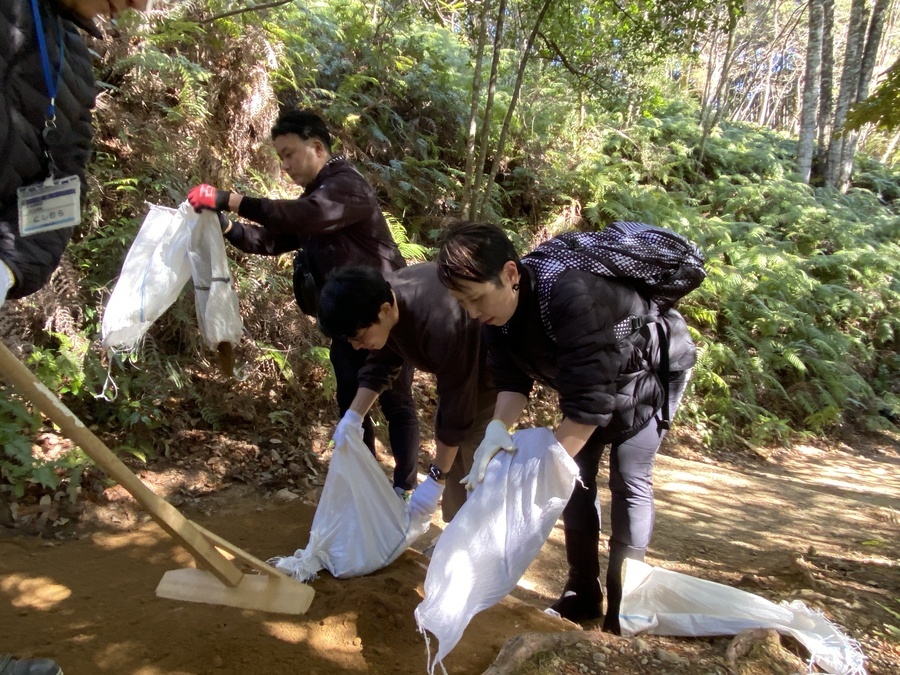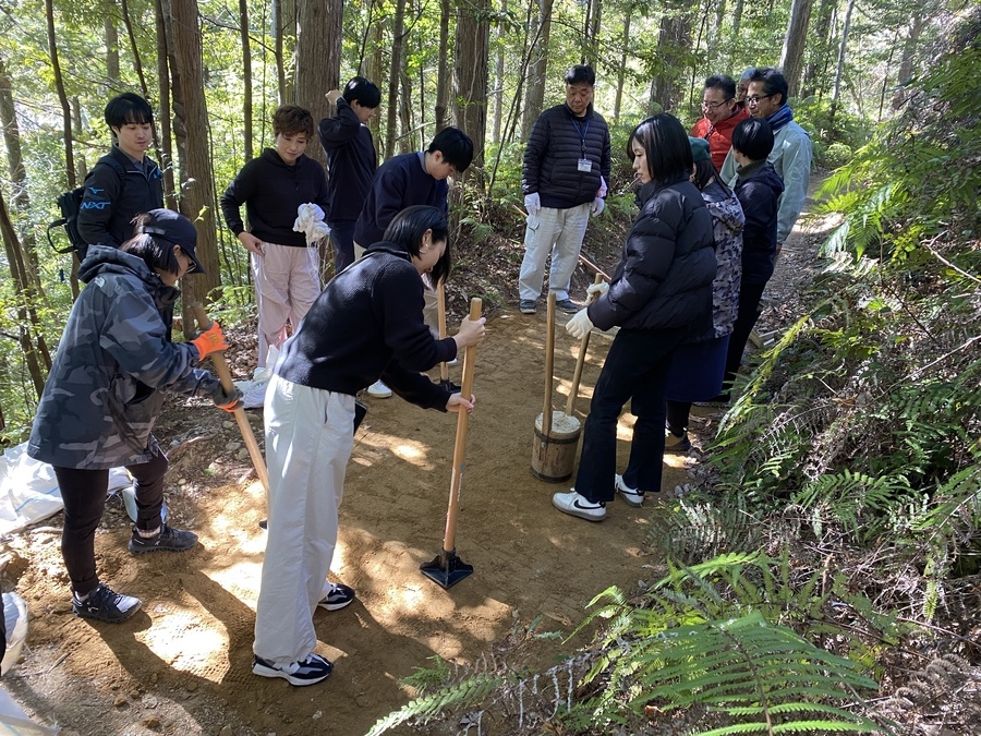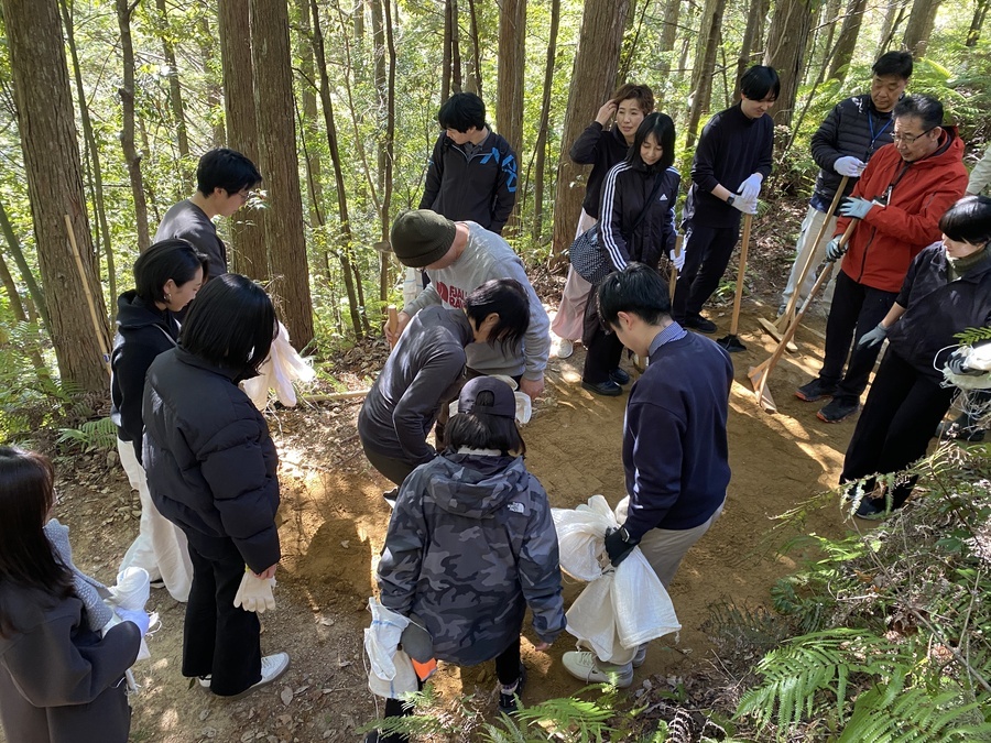 日本航空株式会社関係づくり部様は、今回初めての参加で20名の皆様と一緒に作業をさせていただきました。2月13日(金)にはオンラインで世界遺産入門講座を受講いただき「紀伊山地の霊場と参詣道」について、そして道普請の内容について理解いただきました。