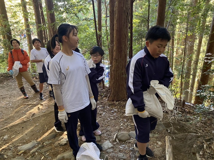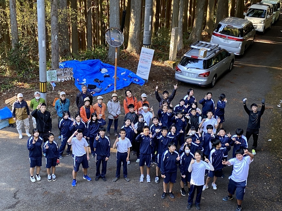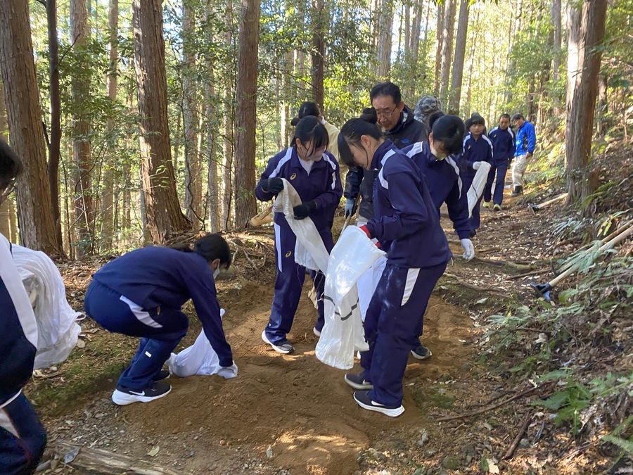 田辺市立本宮中学校全校生徒35名、引率8名と熊野本宮語り部の会から9名の計52名の皆様に道普請にご参加いただきました。今回で14回目となります。毎年ご協力いただき本当にありがとうございます。