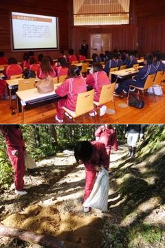 この日、和歌山県立新翔高等学校2、3年生39名は、世界遺産センターを訪れ世界遺産学習に取り組みました。同校は、今年度の次世代育成事業(県世界遺産協議会事業)実践校で、学習は世界遺産入門プログラムに沿って行いました。主な内容は、世界遺産の保全と活用についての講話ならびに、現地ウォークと保全活動(道普請)です。伏拝王子から本宮大社、大斎原までを歩き、途中伏拝王子で雨水等で削られた古道に土入れを行う道普請に汗を流しました。終了後は、皆一様に、充実感に満ちた表情を浮かべて、同センターを後にされたことが印象に残っています。