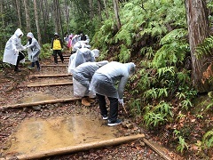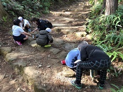 那智勝浦町立市野々小学校3・4年生のみなさんに、熊野参詣道中辺路(伏拝~祓殿)で道普請を行っていただきました。 道普請を行う前に、まず世界遺産学習として、新宮の神倉神社でのフィールドワークを行いました。538段の階段を一段一段上がりました。途中後ろを振り返って見ると足がすくむほどの急な角度でした。無事にみんな登り切り、ゴトビキ岩を間近に見ることができました。また、天気も良く空気がとても澄んでいたの...