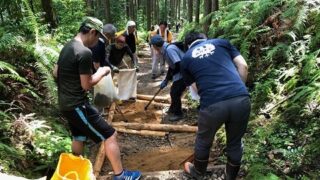 道普請 49-3即自有志【道普請】2019/08/12 49-3即自有志の皆様方に、熊野参詣道中辺路(式水)で道普請を行っていただきました。 まず、式水茶屋近くの土置き場から、水呑王子跡方向へ500m程上がった本日の作業箇所まで、横木や杭などの資材を運んでいただきました。その後、溝に使用している木のうち朽ちてきているものを交換していただきました。また、土を補充する箇所には土の流出を防ぐための横木を設置していただきました。 作業箇所での準備が終わると、い... 道普請