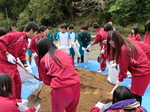 CIMG1813-2.jpg平成23年11月9日(水)、県立新翔高等学校の皆さんが「熊野古道・中辺路(式水)」の道普請を行いました。当日は32名が参加し、現地で「道普請の意義」を受講後、田辺市教委・センター職員の指導の下、雨水により傷んだ道に土を運び入れました。新翔高等学校・観光コース選択生による道普請は、今年で3年目となります。観光者を迎える側として、世界遺産の保全の重要性を学んで頂いています。