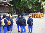 P1000609.jpg世界遺産の学習を行っている橋本市立西部小学校6年生51名のみなさんが、身近にある世界遺産を体験を交えて学ぶ機会として参加されました。午前中に世界遺産を学ぶ講座を受け、午後からは現地学習を行いました。現地学習では、まず伽藍中門再建工事作業館を見学し、その後伽藍地区から奥院地区の弘法大師御廟までを歩きました。そこで高野山の世界遺産としての価値や荘厳な霊地としての文化的景観に直接触れていただくことができました。