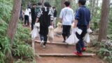 平成25年度環境保全トレッキング【熊野参詣道中辺路】に参加していただいた197名の方に道普請をしていただきました。今回は、伏拝と祓殿の2か所に分かれて、一人土のう袋を4袋ずつ運んでいただきました。伏拝は2.5トン,祓殿は1.5トンの土入れを行った結果、随分歩きやすい道となりました。発心門王子~熊野本宮大社までのトレッキングとその途中の道普請とでお疲れになったことと思います。参加していただいた方々に深く感謝いたします。ありがとうございました。