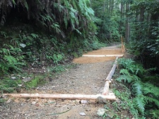 雨水により地面が削られてしまった場所に、1トンの土を補充していただきました。伏拝王子跡近くの土置き場から、土の入った土嚢袋を持ち、作業箇所まで運んでいただきました。作業箇所は、土置場から150mほど三軒茶屋後方面へ行った所でした。全ての土がなくなるまで、何度も往復していただき、土を運んでいただきました。土を運び終えた後、今度は土入れした場所をたこでしっかりと固めていただきました。大変な作業でしたが、おかげで傷んだ箇所がとても歩きやすくなりました。