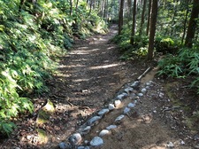 道普請は、土の補充及び整地作業をしていただきました。作業箇所は、伏拝王子跡から本宮大社方面へ400mほど行ったところでした。土置き場から作業箇所まで、皆様で土を運んでいただきました。土の量は、3トンありました。土嚢袋へ土を入れる作業や、補充した土を固める作業もしていただきました。たこで土を固める作業は、子どもたちもがんばってくれました。約8.5kgあるたこで、土をドンドンと突いていきます。自分で固めたところを歩いて、「歩きやすくなったぁ!」と言って喜んでくれていました。