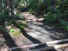 作業箇所は、伏拝王子跡から150m程三軒茶屋跡方面に行ったところでした。雨水により地面が削られてしまっている場所に、約2トンの土を補充していただきました。