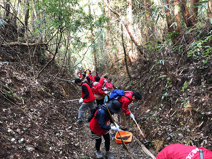 関西東急会の皆様は、今回で8回目の道普請となりました。参詣道の保全活動への継続した取り組みに深く感謝いたします。
