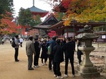 少し寒い日でしたが、ちょうど山内の紅葉が見頃で、たくさんの参拝者がいる中、4名の世界遺産マスターさんの案内で学習を進めました。