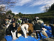 87名の皆様で約3トンの土を補充していただきました。土置き場では、土嚢袋へ土を入れる作業を行っていただきました。そしてそこから土の補充を行う場所まで土を運びます。土置き場から土の補充箇所までは、約400mありました。そこを何度も往復していただきました。小さなお子様も参加してくれていて、元気に何度も往復し大活躍でした。全ての土を運び終え、長い区間に渡って土を補充することができました。