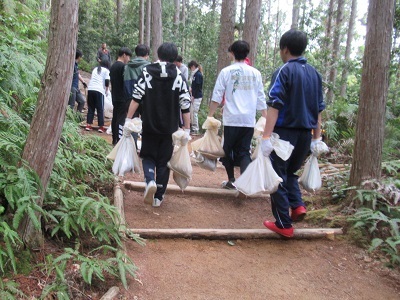 キャリエールホテル旅行専門学校の皆様方は、今回で5回目の道普請ウォークへのご参加となりました。継続した活動に敬意を表し、道普請終了後に感謝状を贈呈させていただきました。代表の方からは、「世界遺産の保全活動はなかなかできることではないことなので、今日は貴重な体験になった。」という言葉をいただきました。