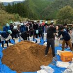世界遺産熊野本宮館での世界遺産講座のあと、花王株式会社和歌山事業場の方々と一緒に熊野古道中辺路(式水付近)で道普請。午後からは大斎原から大日越を経て湯の峰温泉までの古道ウォークを行いました。