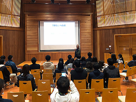 土置き場にて道普請作業についての説明を聞いていただいた後、いよいよ作業開始。ご用意いただいた約1トンの土を土嚢袋に入れる作業、それを補充箇所まで運ぶ作業、補充した土を整地する作業をしていただきました。