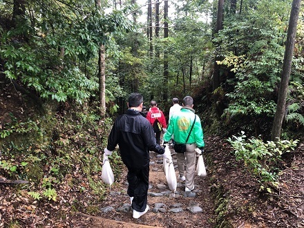 一般財団法人和歌山県損害保険代理業協会の皆様方に、道普請を行っていただきました。場所は、熊野参詣道中辺路の伏拝王子跡付近にて行いました。