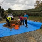 今回補充いただいた土は、約3トン。それを三軒茶屋跡から補充箇所まで運んでいただきました。今回の補充箇所は、伏拝王子跡方向へ約100mから200m上ったところでした。補充箇所は6箇所あり、一番遠いところは土置き場から約200mもあったので、しかも上り坂ということもあり大変な作業だったと思います。しかし、みなさんの元気溢れる動きで、作業はどんどん進んでいきました。無事に3トンすべての土を補充することができました。