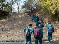 世界遺産講座は去る1月26日に同校内で既に行ったので、本日は現地学習に絞って実施しました。センター職員の案内により、熊野参詣道中辺路の滝尻王子跡から不寝王子跡を経て高原熊野神社に至るコースを歩いていただきました。