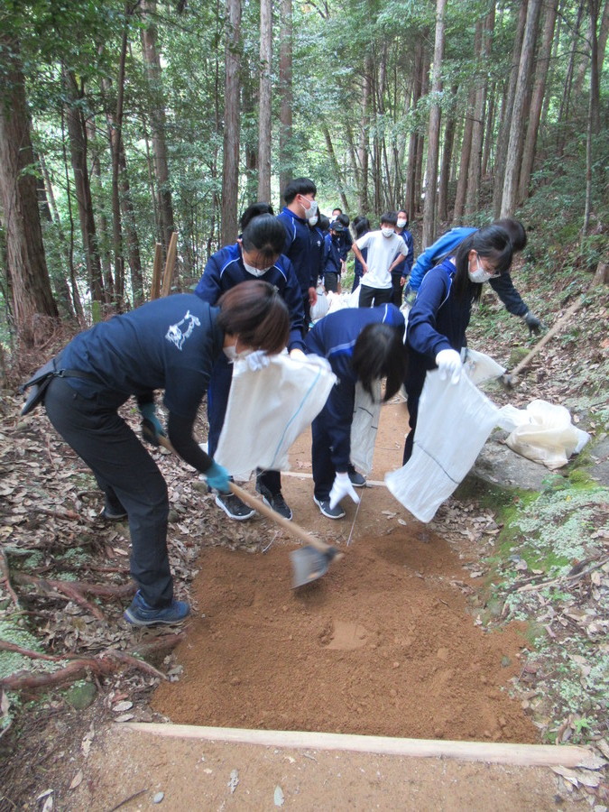 活発な生徒が多く、道普請も積極的に土嚢をたくさん運び、土入れと整地作業も面白そうに参加していました。また現地学習でもマスターさんの説明に熱心に聴き入っていました。