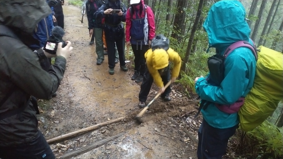 ヤマップさんは、「DOMO支援プロジェクト」の名のもと「紀伊山地の霊場と参詣道」の保全活動のために広くお金を募り、寄付してくださいました。そのお金は道普請に必要な道具類の購入に充てました。ご支援くださった方々やヤマップの関係者の方々に厚くお礼を申し上げます。
