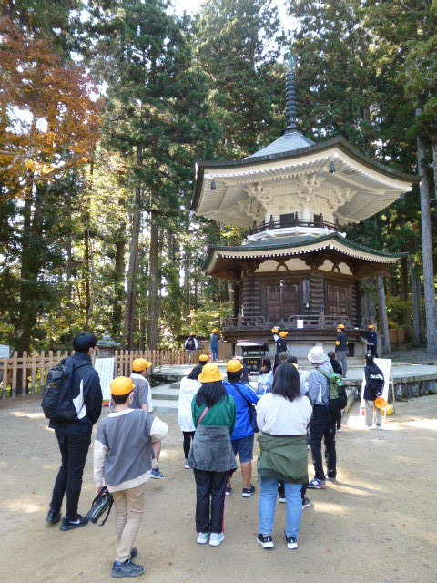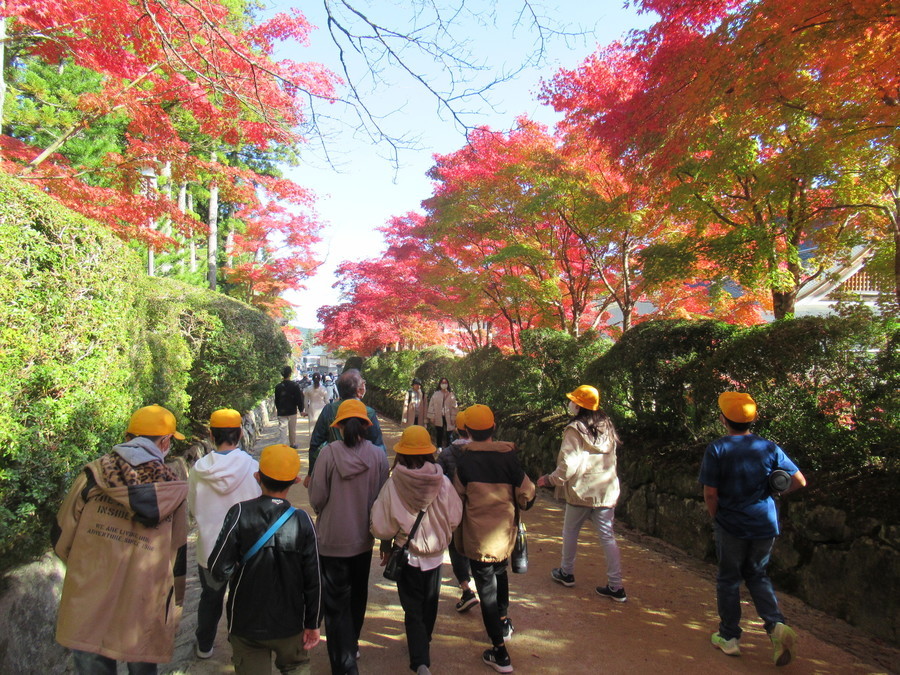 和歌山市立楠見東小学校【次世代】2022/11/4 次世代育成 2022.11.25 和歌山市立楠見東小学校の6年生の児童56名が参加しました。 事前に学校で世界遺産入門講座を実施し、当日は一の橋から弘法大師御廟まで、午後は壇上伽藍から金剛峯寺まで歩きました。 この時期は高野山の紅葉が最盛期で、美しい景色に見とれながらも、マスターさんの説明を聞きながら、世界遺産の魅力を実際に体感できたのではないかと思います。