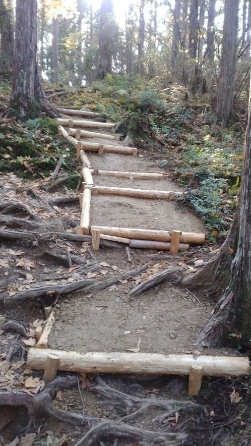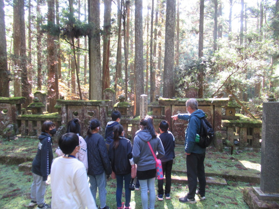 事前に学校で世界遺産講座を実施し、当日の午前は一の橋から弘法大師御廟に至る現地学習を行い、午後は高野参詣道女人道の転軸山の上りで道普請を実施しました。![]()