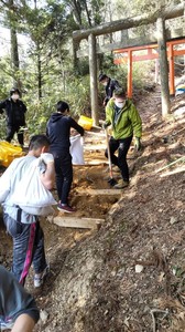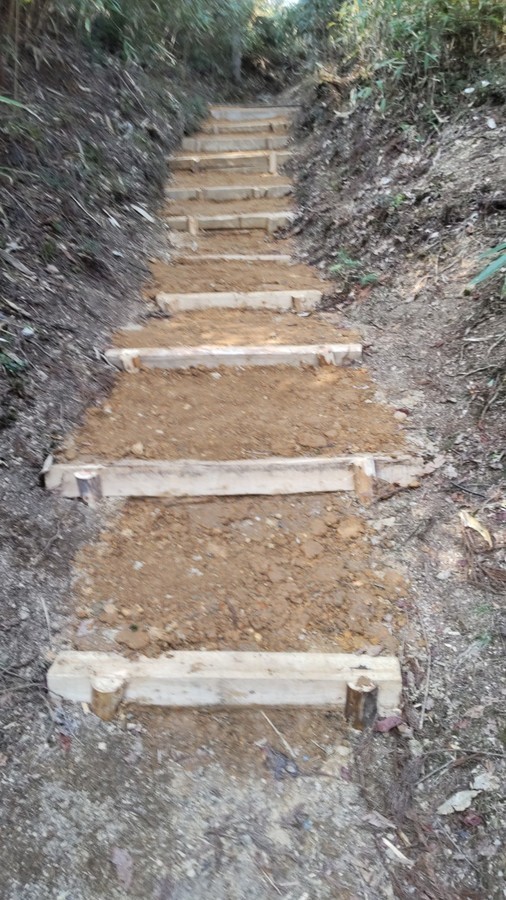 場所は大門近くの弁天岳入り口から120mぐらい上ったところで、土の量は0.8tほどでした。今回で11回目の参加となりますが、高野山での道普請は初めてで、上り坂がきついと漏らしながらも黙々と土を運んではしっかりと土を固めて下さいました。参加者は少なくても、何度も参加してくださったことがある強者ぞろいで、1時間ほどの作業でしたが、しっかりとした道普請ができました。ご協力ありがとうございました。