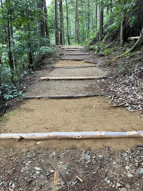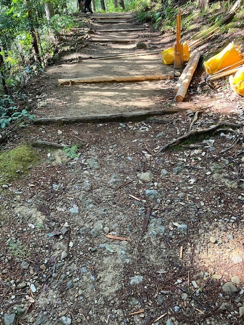 今回のファムツアーには、全国から13社15人の各社ご担当者が参加されました。道普請の土量は0.5トン、作業場は三軒茶屋跡を伏拝王子側に30mほど上った所です。主催者の県観光振興課の職員も加わり一緒に汗を流しました。