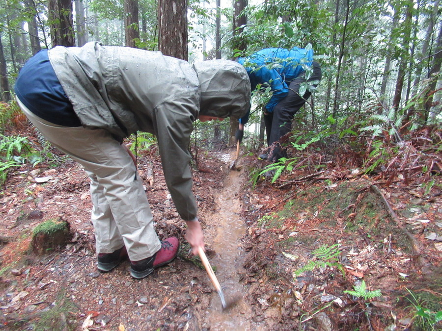 場所は、伏拝王子~本宮大社の間で10ヶ所以上の側溝掃除を行いました。雨の中での活動ではありましたが、溝があるところ全ての枯れ葉や木の棒などを取り除くことができました。側溝が詰まっていると水がきれいに流れなくなり、道の砂などが雨で流れ落ちて、道が傷んでしまう・・・