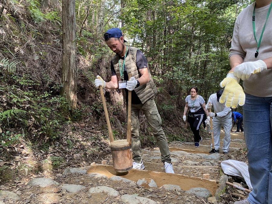 秋のシーズンということもあり観光客の方々、特に海外からのお客様が多く歩かれていて、道普請活動に急遽参加してくれる方も数人いたのがすごく嬉しかったです。このようにみんなで歩く道を守っていく文化を作っていくことが未来に繋がっていくと感じました。