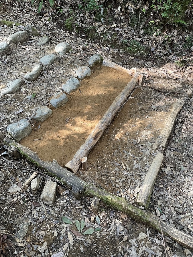 今回、JICAの「中央アジア地域広域観光開発政策」プログラムの一環で中央アジア5カ国(ウズベキスタン、カザフスタン、キルギス、タジキスタン、トルクメニスタン)から10名の方に道普請をしていただきました。場所は、伏拝王子から三軒茶屋跡に向かって約300mのところで土の量0.5tで行いました。世界遺産の保全活動に大変興味を持っておられ、作業も30分もかからず、あっという間に終わりました。土入れをしている様子や、たこやタンパーを使って土を固める様子などの記念動画や写真を撮りながら楽しく活動をしていただきました。