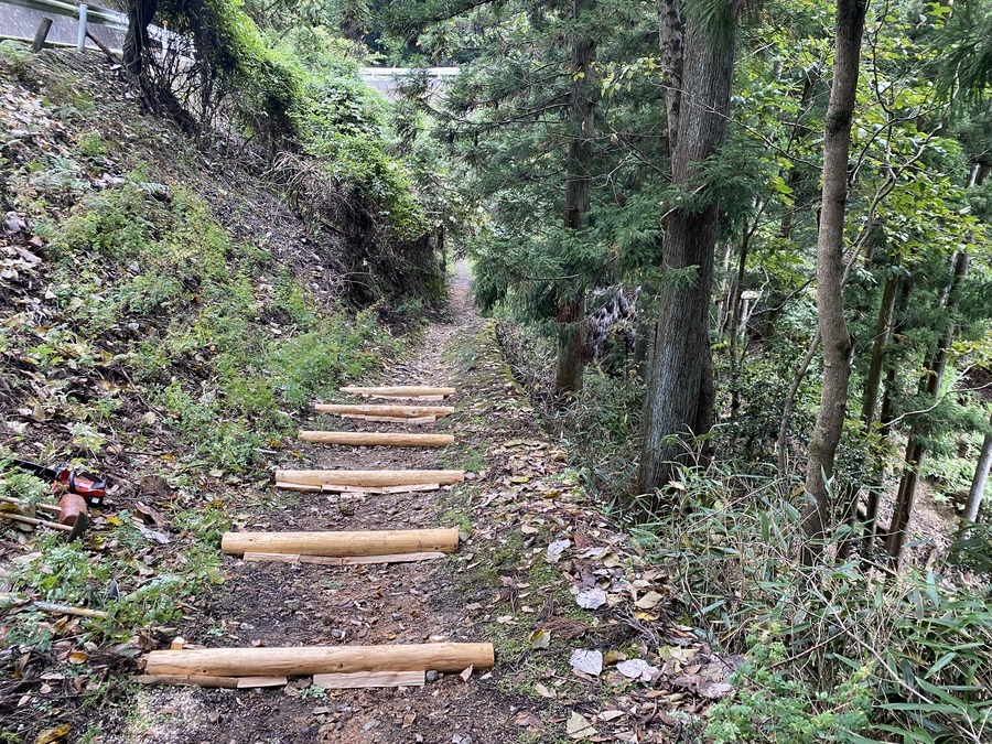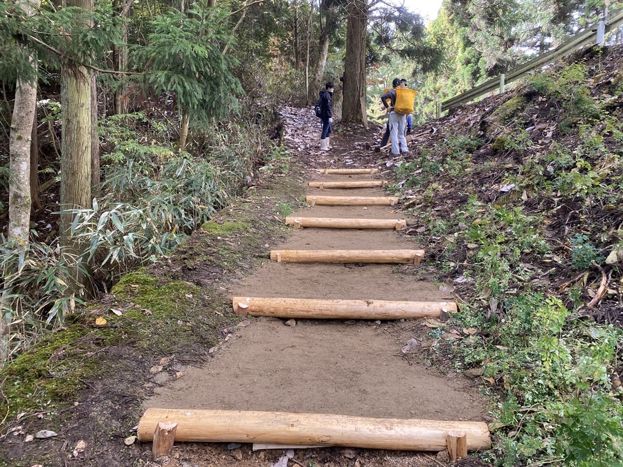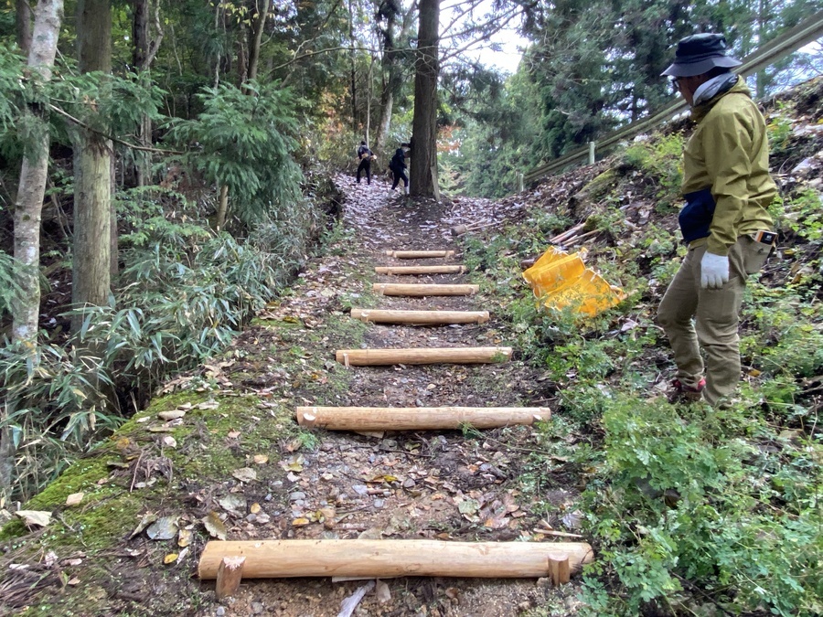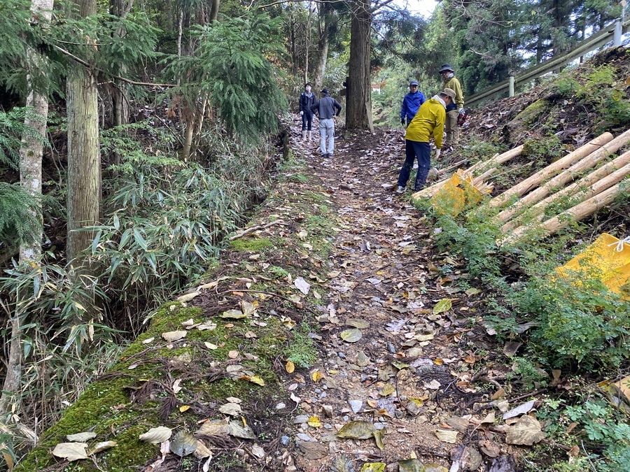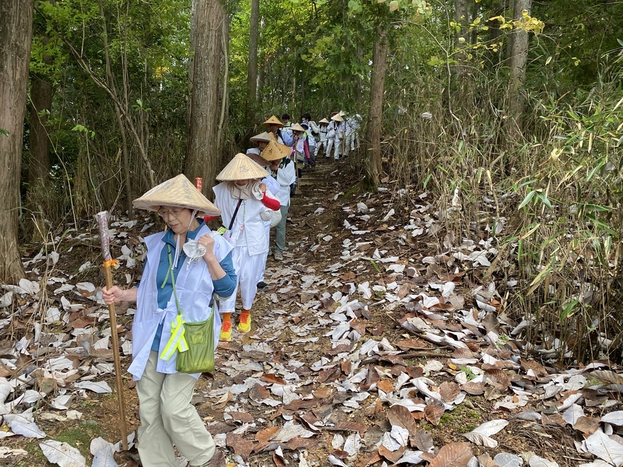 また、今回は、土置き場を通りかかった「伊予歩き遍路」(伊予鉄トラベル催行)の参加者の皆さん26名が、「高野山へ歩く途中だから」と作業のお手伝いを申し出ていただき急遽道普請に参加となりました。なんでも、3年かけて四国遍路を催行されており、今回は高野山編として来られたとのことでした。温かいお気持ちに感謝いたします。ありがとうございました。
