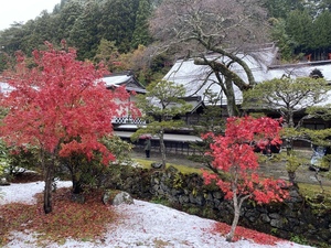 由良町立由良中学校2年生28名の生徒に次世代育成事業にご参加いただきました。その日は、高野山内で初雪を記録した日となり、最低気温で0.6℃と冷えた一日となりました。例年よりも雪が降るのが早いそうで由良中学校の生徒の皆さんにとっても印象に残る一日になったのではないでしょうか。私自身も11月に雪を見るのが初めてだったので少しワクワクしました。