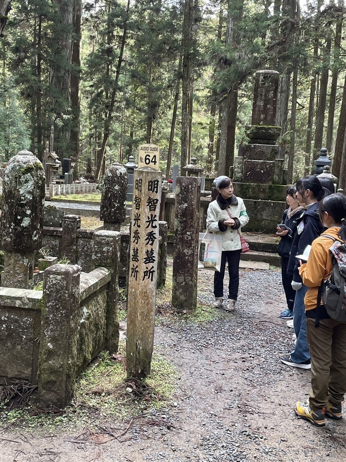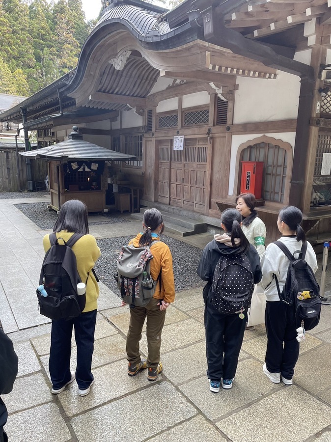 また、地元FM局の取材があり、生徒さんも緊張しながら質問に答えていました。学習終了時点で「今日はどうでしたか?」と聞くとマスターさんが、「霊宝館とか金剛峯寺の中を見ればもっと感動する。」と説明していただいたので、今度は家族や友人と一緒に来たいです。」と言ってくれました。今後、興味を持たれたことをさらに深めていかれることを期待しています。ありがとうございました。