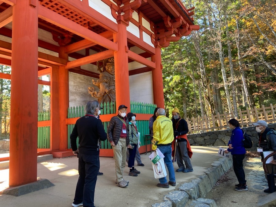午前中は高野山大学大教室にて、高野山大学密教文化研究所受託研究員の木下浩良氏の講演(演題:『巡礼者の聖地紀伊半島―高野山を中心として―』)を聞いていただきました。参加者からは、「今まであまり知らなかった高野山について学ぶことができ大変有意義だった。」と好評でした。午後は、現地学習として高野山町石道語り部の会並びに高野七口再生保存会の方々の案内で、Aコースは女人道、Bコースは一の橋から弘法大師御廟、Cコースは壇上伽藍から金剛峯寺を歩きました。1時間半から2時間足らずの時間でしたが、参加者は案内してくださった語り部さんのお話に耳を傾け、高野山の歴史と魅力に触れることができたことと思います。また、いろんな地域から来られた方々と一緒に歩くことで、参加者相互の交流を図ることができたと思います。