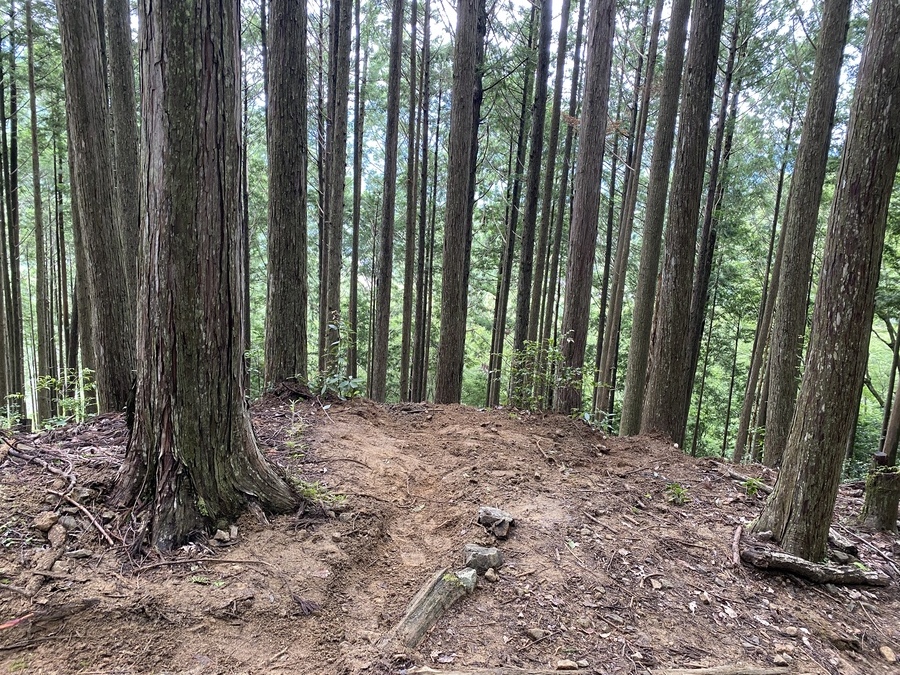作業箇所は、66番道標と67番道標の間に10箇所以上ある横断溝と側溝で水の流れの機能が元にもどるように約5cmの土を掘る作業をしました。