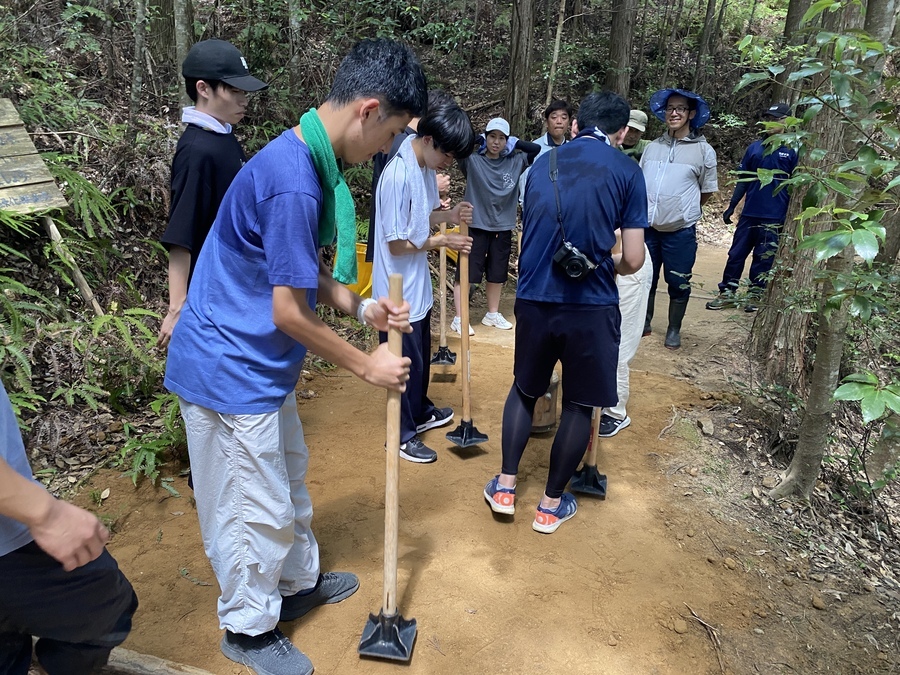 追手門学院大学様は、昨年度に引き続き2回目の参加で11名の皆様にお越しいただきました。学生さんの中には2年連続で参加されている方もいて再会が嬉しかったです。初めに世界遺産熊野本宮館で世界遺産入門講座を受講いただきました。約50分間でしたが発言もしていただきながら進めることができて良かったです。少しでも世界遺産「紀伊山地の霊場と参詣道」の魅力を感じてもらえたなら幸いです。