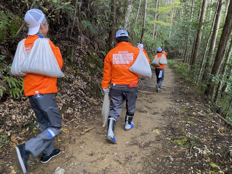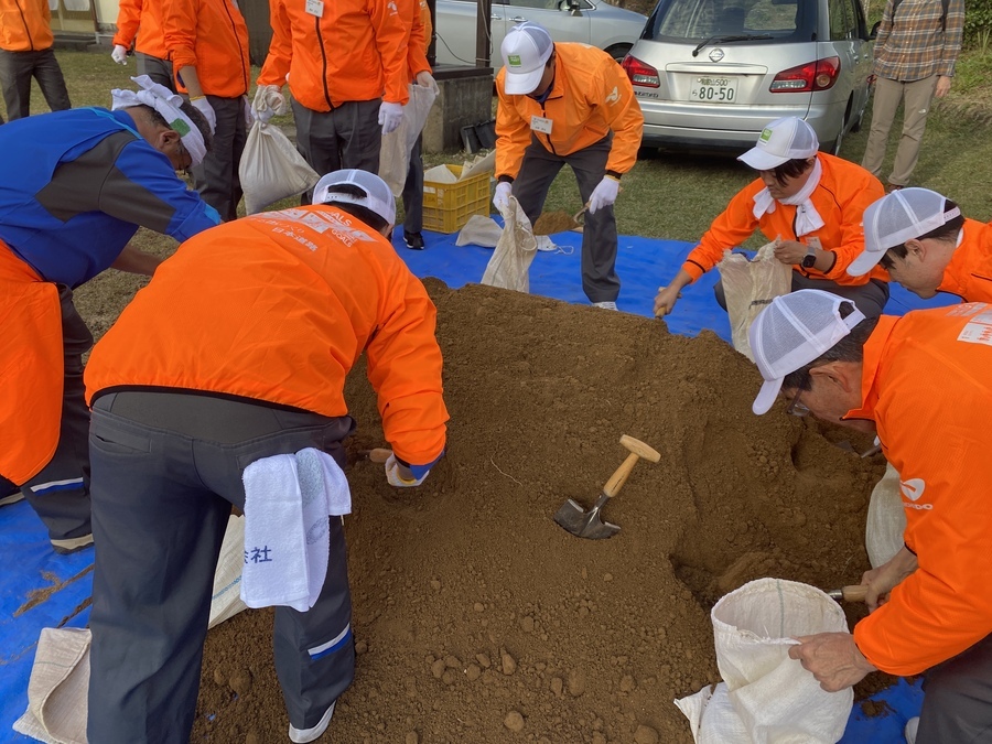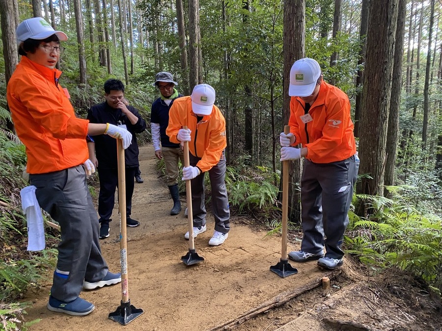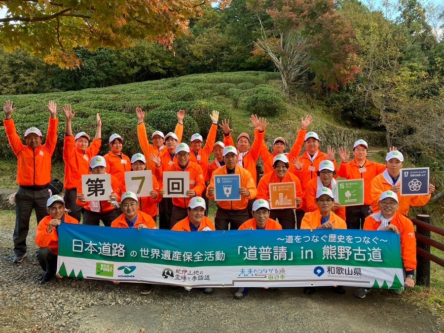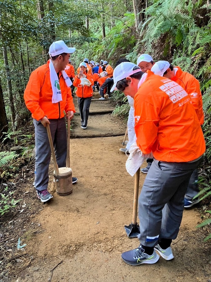 日本道路株式会社様は、今回で7回目の道普請で24名の皆様にご参加いただきました。朝早くから出発した東京本社の方や、関西支店の方に熊野本宮に来ていただきました。
