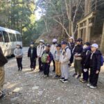 那智勝浦町立下里小学校4年生12名、教師2名の計14名が大辺路清水峠の清掃活動にご参加くださいました。今回の作業箇所は、ジオパークの視点からも重要なエリアであったため、和歌山県ジオパークセンター職員にも同行していただきました。