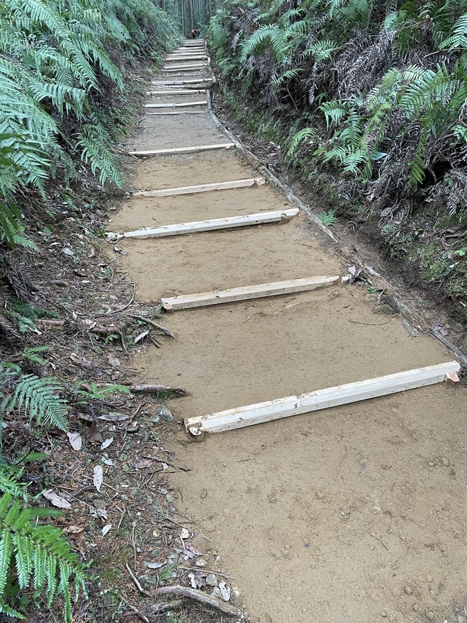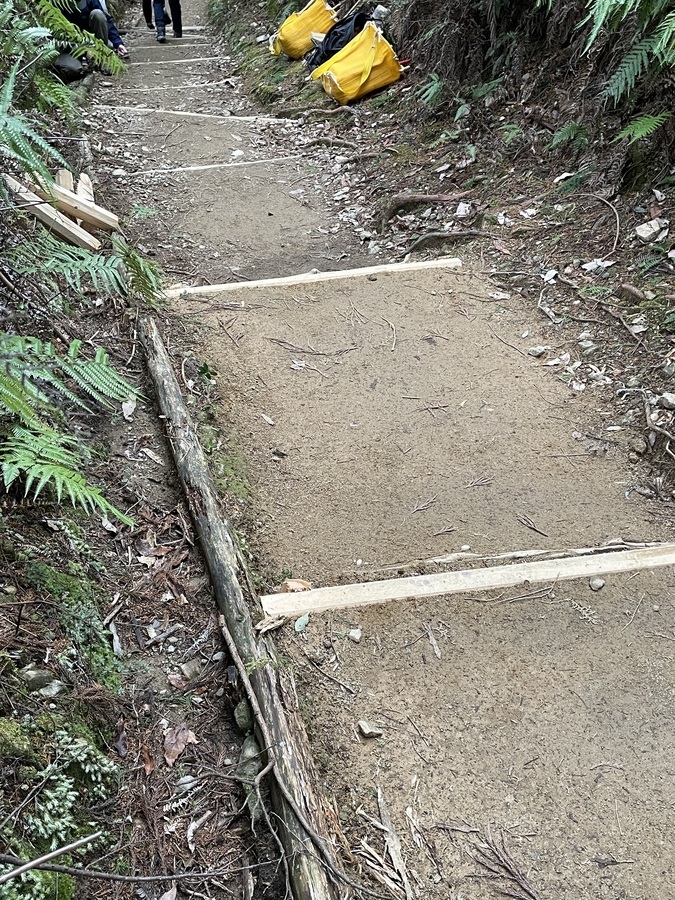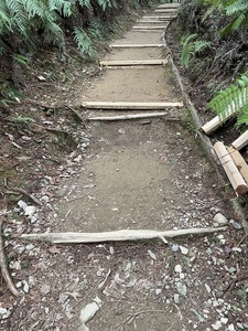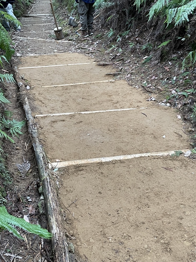 全員5~6回往復していただきましたが、特に5歳くらいの子供さんが元気で、マイバケツとマイスコップを持って大人と同じように5~6往復しており、土を下すとすぐに戻っていくので、大人が「ちょっと待って、休ませて」と慌てている様子が微笑ましく、楽しい道普請になりました。