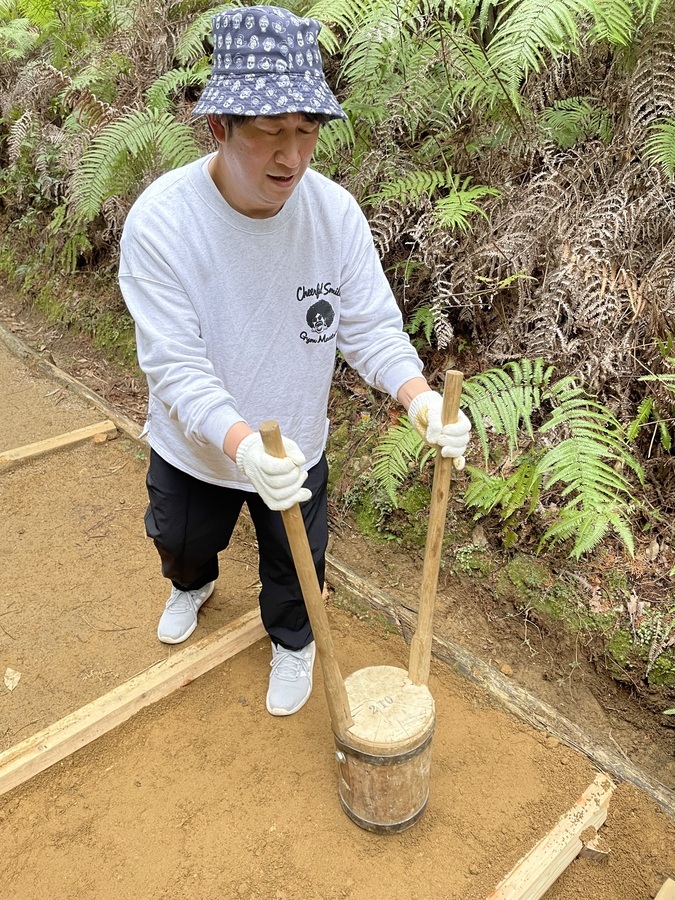 ⑥土固め作業(たこを使って)