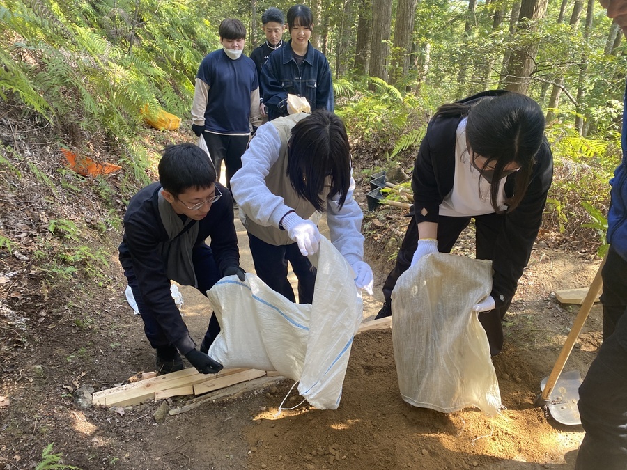 入学式を4月1日に済ませたばかりでまだ話したことがないメンバーもたくさんいたみたいでしたが道普請活動を通してコミュニケーションをとれていたように思いました。笑い声が絶えず、楽しい雰囲気で道普請をしていただけたので良かったです。
