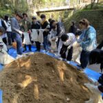 土嚢袋に土入れをする隊、月見ヶ丘神社まで土をひたすら運ぶ隊、神社から土入れ箇所まで運ぶ隊に分かれて活動をしました。和歌山ウェイブスの皆さんは、さすが現役選手と思わせられるほど体力、そして力があり心強かったです。何往復か分からないくらい運んでいただきました。急な坂道にも関わらず足が止まることがなくノンストップで作業をしていただきました。さわかみ財団メンバーの皆さんは昨年度の11月ぶりの再会でしたが本当にタフで感服いたしました。朝9時からスタートし、終わったのは夕方4時。無事4tの土を運びきり、土を入れることができました。合計で18箇所の段を作ることができました。1日本当にありがとうございました。さわかみ財団様は、来月も熊野本宮に道普請に来ていただける予定となっておりますので引き続きよろしくお願いいたします。和歌山ウェイブス様は、今週ホーム開幕戦が控えているそうなので怪我のないように頑張ってください。応援しております。