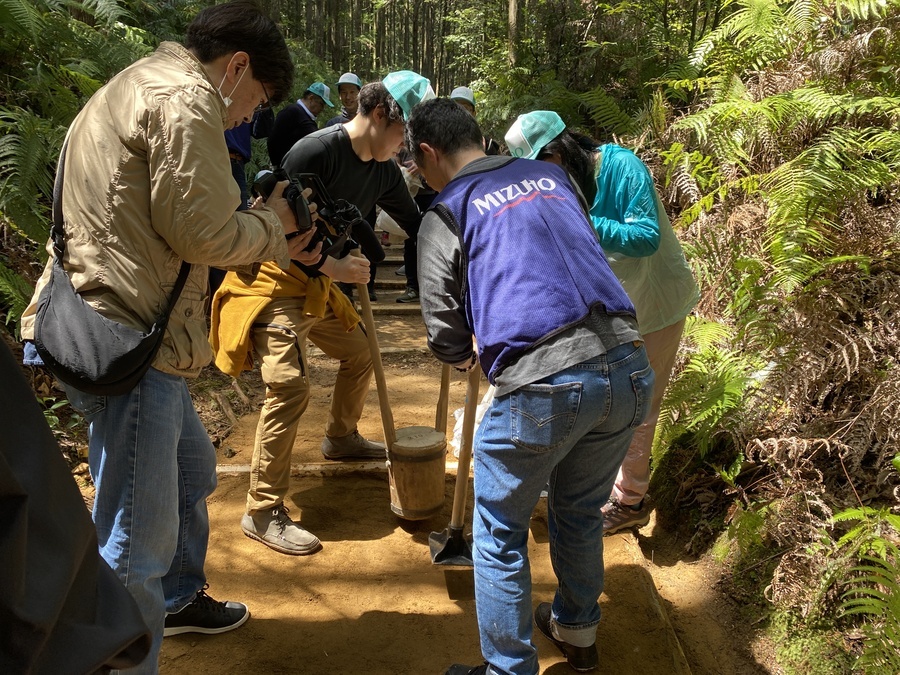花王株式会社和歌山事業所・株式会社みずほ銀行和歌山支店様合わせて43名が道普請にご参加くださいました。今回で花王様は9回目、みずほ様は2回目の活動となりました。道普請活動にご理解いただきありがとうございます。