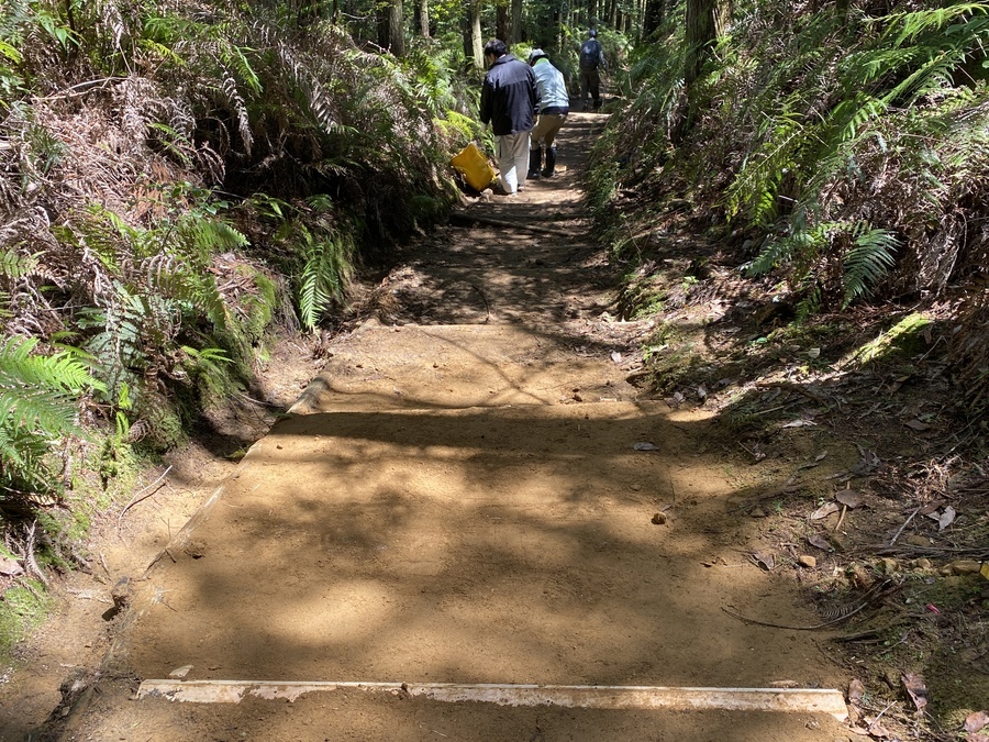 今回の活動場所は式水で、土置き場から土入れ箇所まで約250mのところでの作業で土の量は1tでした。これまでに何度か活動に参加されている方もおられたみたいで嬉しかったです。スムーズに作業が進み、5〜7往復土を運んでいただいて1時間以内で終了することができました。その後土固め作業も何人かの方にやっていただきました。この日は、テレビ和歌山の取材も入っていたので道普請活動をたくさんの方々に知っていただける機会になってほしいと思います。放送される日が待ちどおしいです。