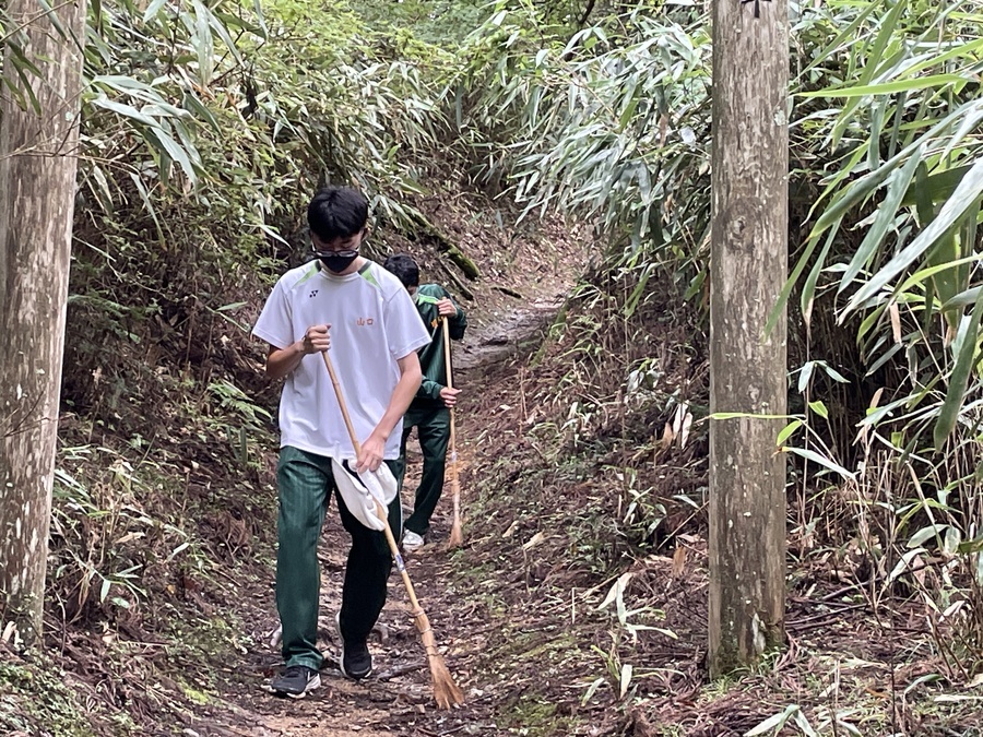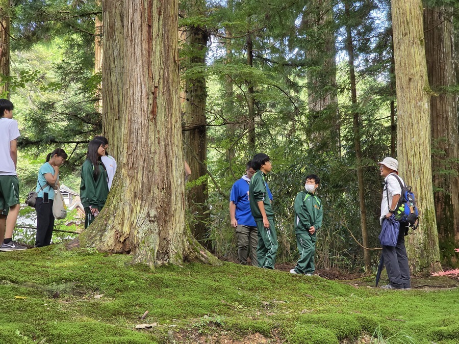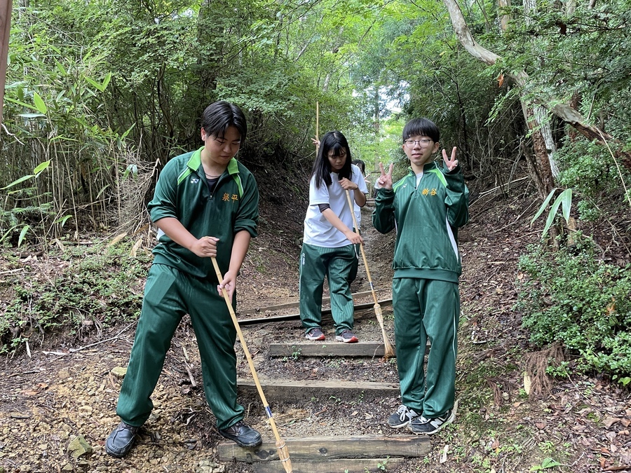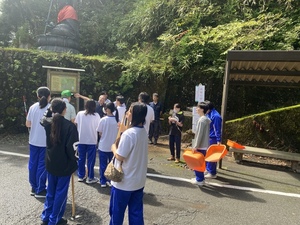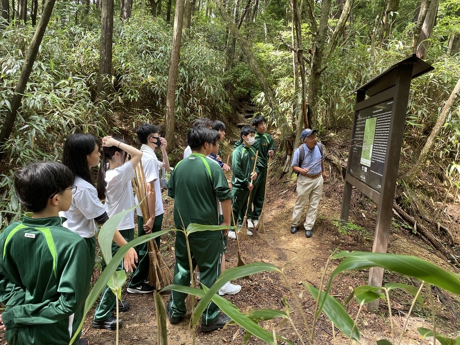 女人道の清掃作業も含まれていたので世界遺産センター職員が指導のもと、道を掃いたり、側溝の土出しを行いました。約30分の作業ではありましたが歩きやすくしていただきました。その道中では世界遺産マスターによる女人道の説明もあり、より深く学べたと思います。