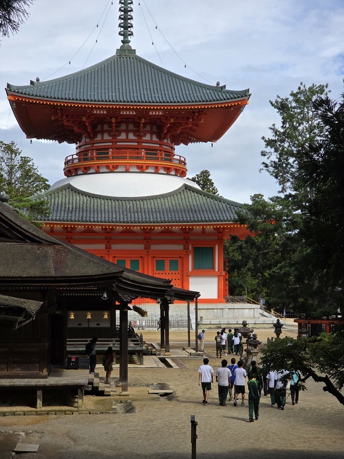 昼食後は、壇上伽藍、金剛峯寺等について学びました。各ポイントごとで立ち止まり、その場所がどのような場所なのか、などを世界遺産マスターが丁寧に説明していただきました。