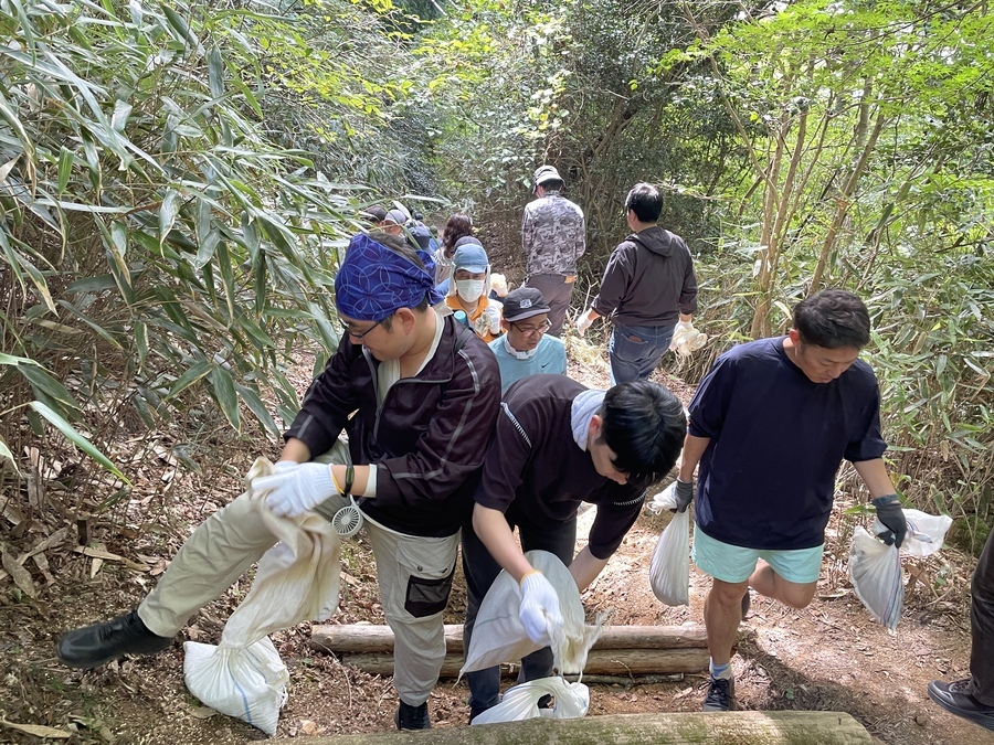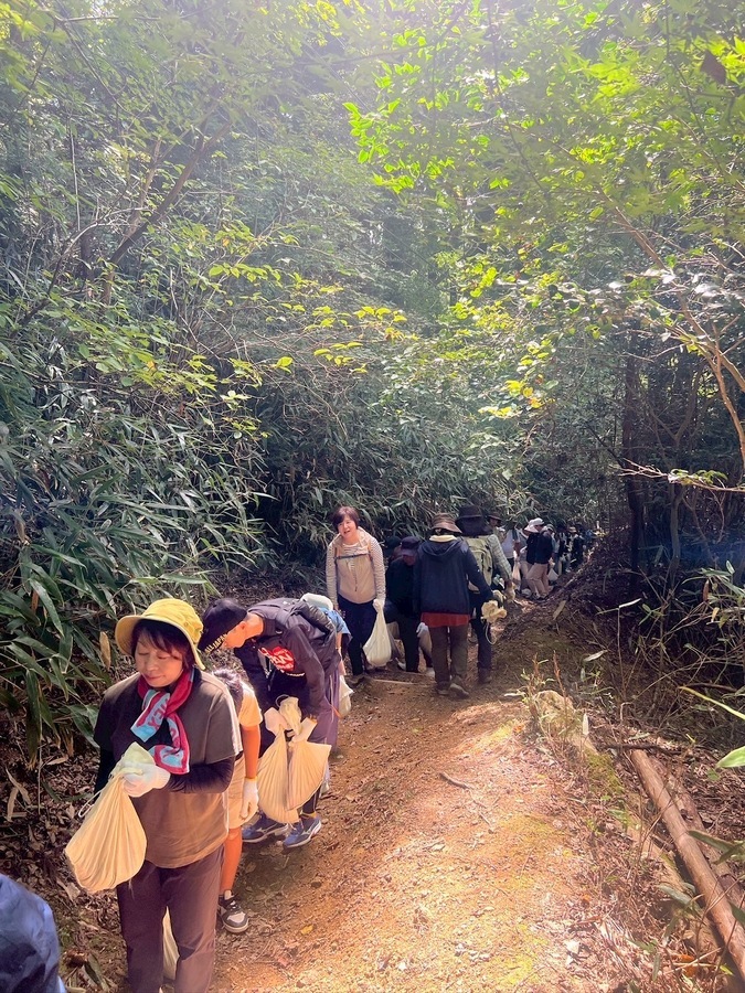 関西電力株式会社様は、昨年度は下見も兼ねて道普請体験をしていただき、今回は社内で参加者を募集し高野山での道普請を実施していただきました。76名の皆様に来ていただき大所帯での活動となりました。家族での参加もあり小中学生も来ていただいていたので嬉しく思いました。