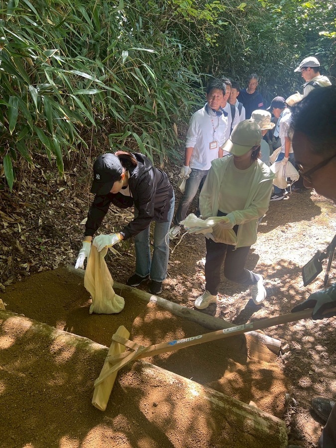 関西電力様が到着後、世界遺産センター職員が道普請について説明をし、活動をスタートしました。普段の道普請よりも距離があったので大変だったかと思います。人数が多かったので1人あたり2回ほどで運び終え、1時間足らずで作業を終えることができました。参加者様の声の中には、「まだまだ運べる。」といった声や「来年はもう少し土が多くてもいけそう。」といった積極的な感想が多く、今回の活動がよい機会となったのであれば嬉しいです。